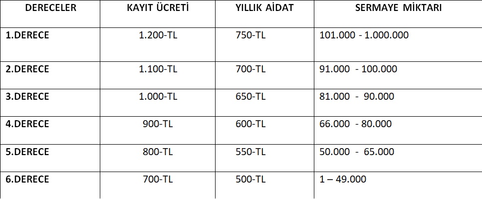 2025 YILI KAYIT ÜCRETİ – YILLIK AİDAT VE MUNZAM AİDAT TARİFESİ
